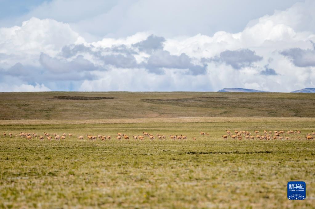 這是在羌塘國家級自然保護(hù)區(qū)內(nèi)拍攝的藏羚羊(7月11日攝)。新華社記者 晉美多吉 攝