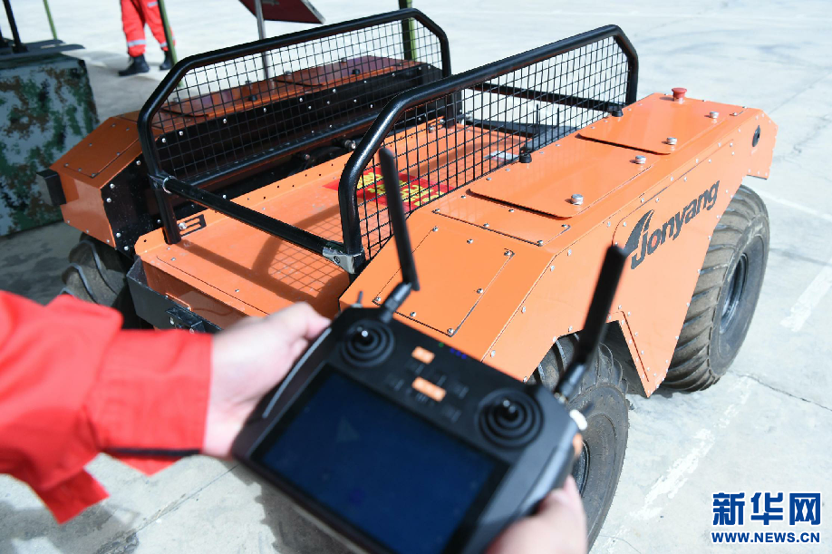 8月5日,工作人員在拉薩基地演示遙控水陸兩棲隨行機器人。新華網(wǎng) 旦增努布 攝