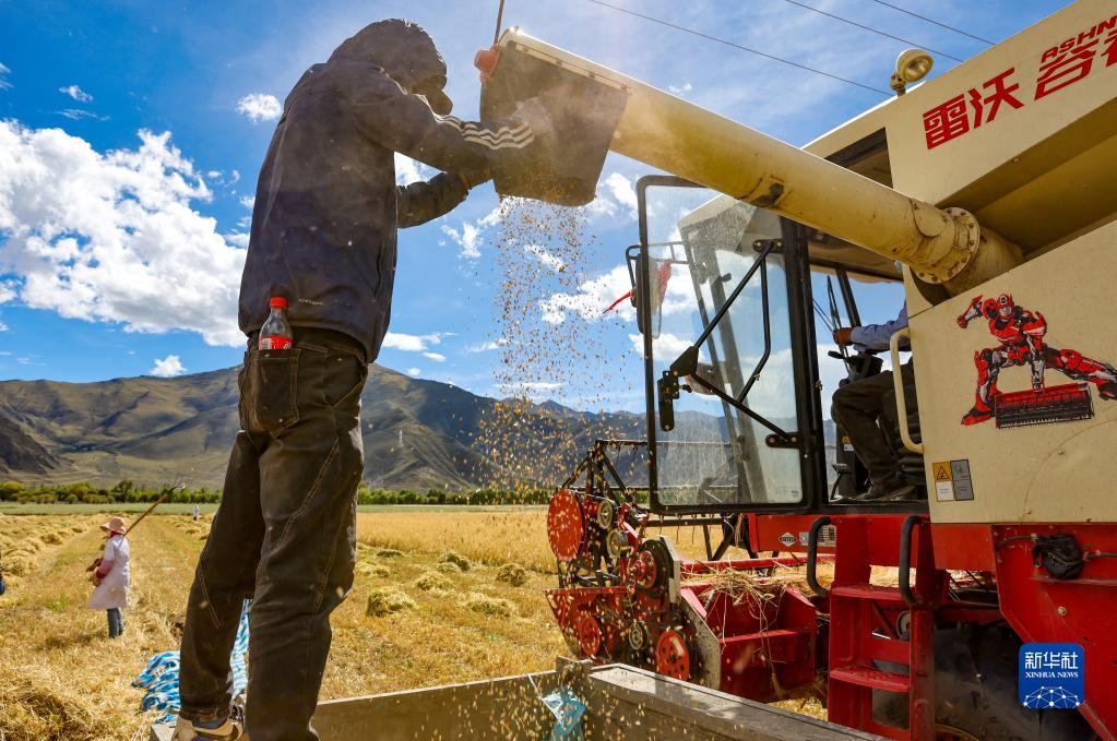 第五個中國農(nóng)民豐收節(jié)在即,西藏自治區(qū)拉薩市林周縣的田間地頭一片繁忙。據(jù)了解,林周縣目前累計糧食收獲面積為12.43萬畝,已收獲秋糧總產(chǎn)量預估6萬噸,豐收在望。