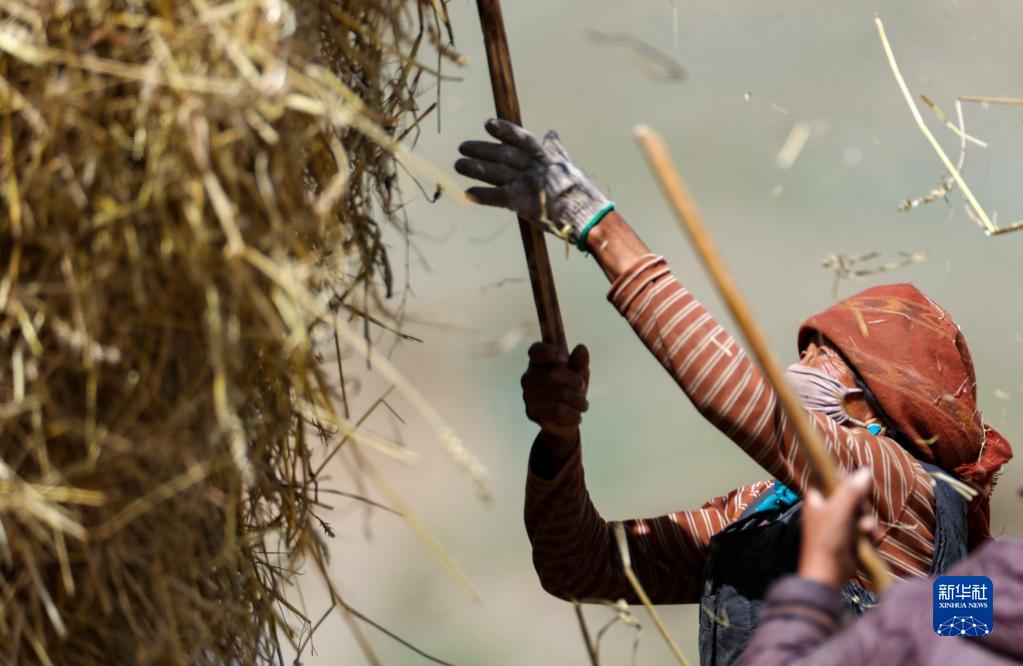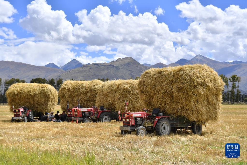9月21日,拉薩市林周縣邊林鄉(xiāng)當杰村的村民在收集秸稈。新華社記者 姜帆 攝