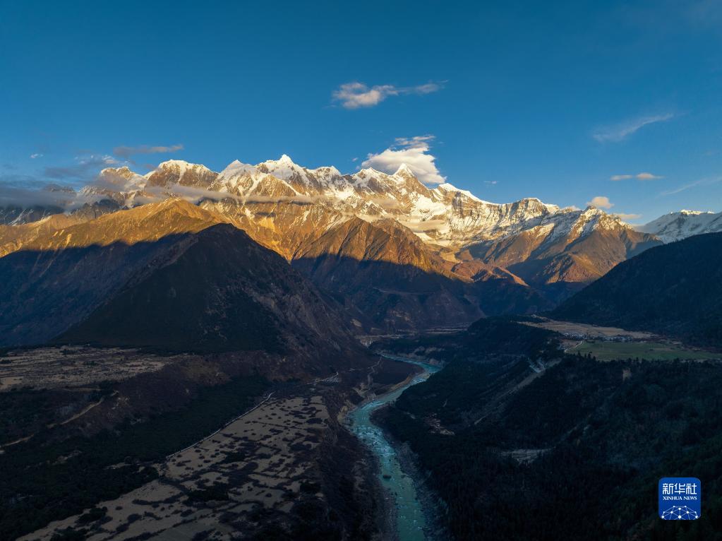 南迦巴瓦峰和山腳下的村莊(11月28日攝,無人機照片)。新華社發(fā)(董志雄 攝)
