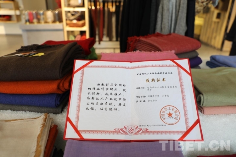 牦牛的生存環(huán)境決定了牦牛絨比普通羊毛更加保暖、柔軟,但也帶來了紡織上的技術(shù)難題。牦牛絨很細,纖維的卷曲較少并且卷曲形態(tài)不規(guī)則,成條成紗難度大。在不斷的探索中,團隊發(fā)現(xiàn)牦牛絨與蠶絲混紡能改善牦牛絨的可紡性,這解決了一大技術(shù)難題,公司還因此獲得知識產(chǎn)權(quán)專利及多項科學(xué)技術(shù)獎項。