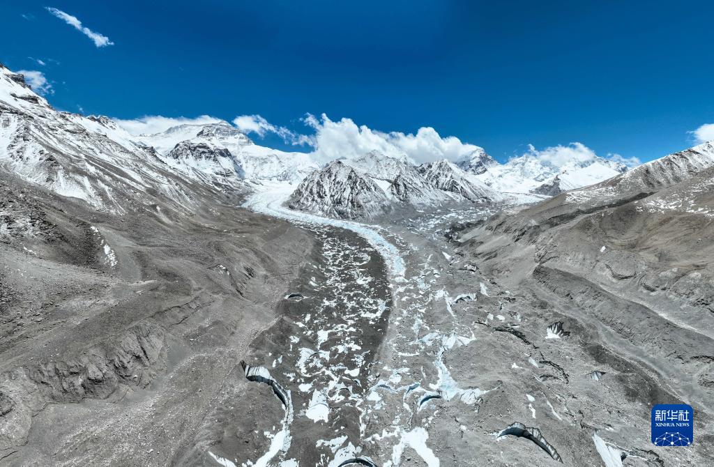 這是珠峰腳下的中絨布冰川(5月15日攝,無(wú)人機(jī)照片)。新華社記者 孫非 攝