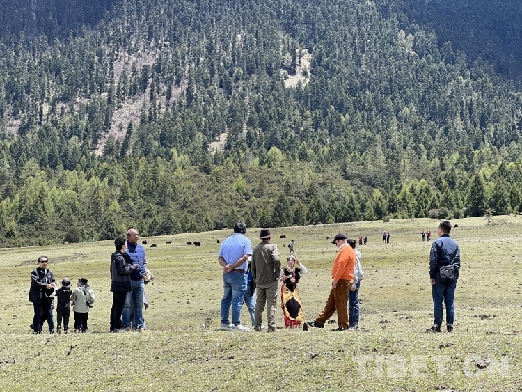 圖為5月17日參訪團(tuán)成員來(lái)到魯朗鎮(zhèn)扎西崗村 攝影:德吉卓瑪