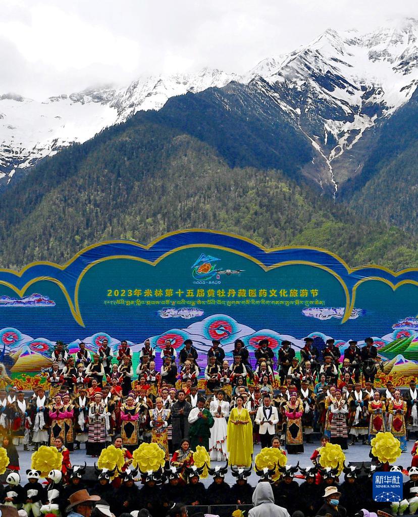 5月28日拍攝的米林市第十五屆黃牡丹藏醫(yī)藥文化旅游節(jié)開幕式現(xiàn)場(chǎng)。新華社記者 劉文博 攝
