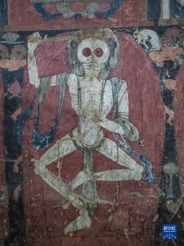 這是5月26日拍攝的皮央石窟壁畫(huà)中的骷髏造型。新華社記者 晉美多吉 攝