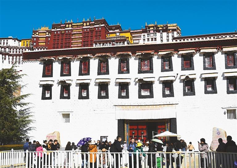 2023年11月1日至2024年3月15日為“冬游西藏”市場促進活動時間,在此期間,除寺廟景區(qū)外,西藏自治區(qū)所有A級景區(qū)免費游覽?;顒訂右詠恚歼_拉宮作為游客來藏旅游的首選之地,日均接待量達4000余人次。 圖為游客正在有序進入布達拉宮。 記者 洛桑 攝