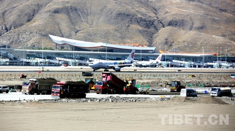 資料圖:今年4月,拉薩貢嘎機場第二跑道建設現場