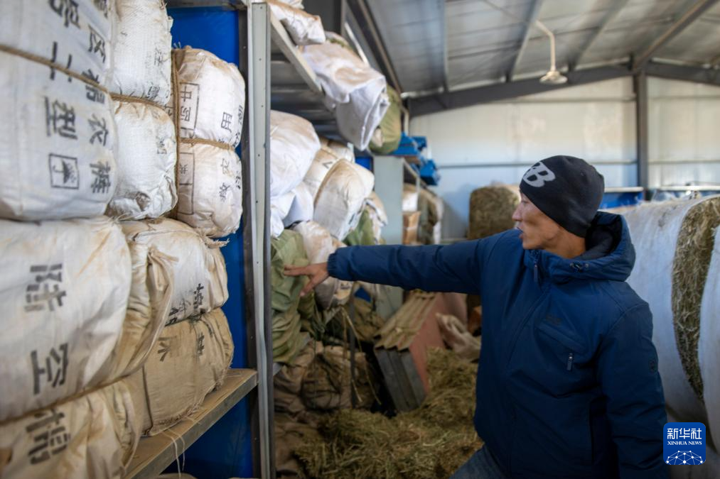 當(dāng)?shù)馗刹吭诙砭绵l(xiāng)農(nóng)牧業(yè)防抗災(zāi)物資儲(chǔ)備庫(kù)里盤點(diǎn)物資庫(kù)存。這里草料、爐子、棉服、煤炭、除雪工具等一應(yīng)俱全(12月18日攝)。新華社記者 姜帆 攝