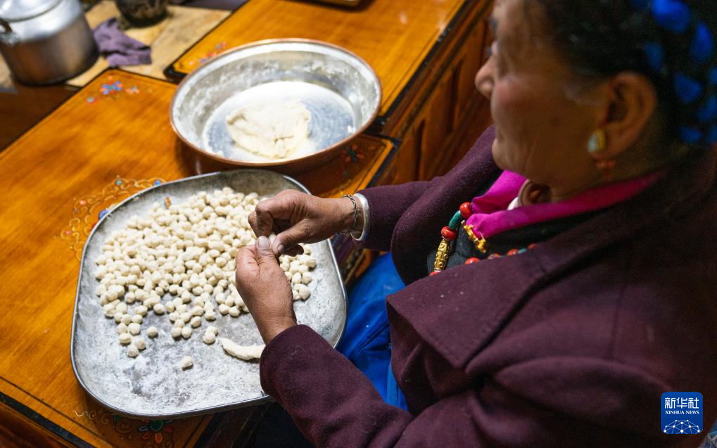 在日喀則市桑珠孜區(qū)洛瑪彩林社區(qū),59歲的巴桑普尺掌勺家里的“古突”宴。和面、揉面、煮面,火爐上一鍋牦牛肉湯熱氣騰騰。巴桑普尺高興地說:“今年是第一次在新房里過年,很開心?!?/p>