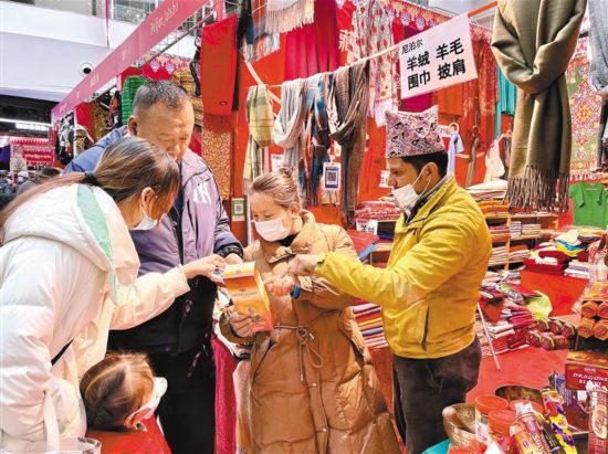 “西藏一直以來(lái)都有和周邊國(guó)家通商的傳統(tǒng),尤其是在‘一帶一路’倡議提出后,老百姓想買點(diǎn)國(guó)外的‘稀罕物’很方便?!笔忻竦┰稣f(shuō),“展銷會(huì)商品比較豐富。馬上該過(guò)年了,提前買點(diǎn)手工藝品裝飾一下家里。再給馬上就要放寒假的孫子、孫女買點(diǎn)小零食什么的,讓他們能吃個(gè)‘新鮮’?!?/p>