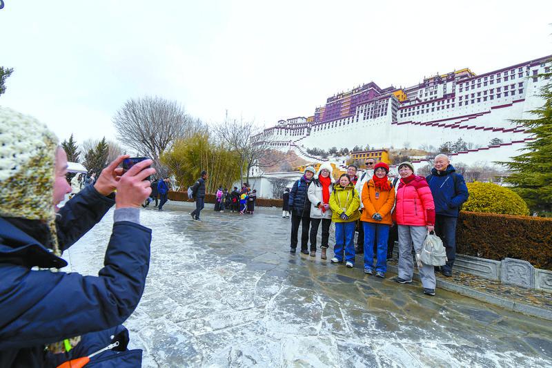 “冬游西藏”活動(dòng)開展以來,吸引大批全國各地游客進(jìn)藏旅游,實(shí)現(xiàn)西藏冬季旅游有溫度、淡季不淡的高質(zhì)量旅游發(fā)展新格局。圖為1月16日,來自上海的游客在布達(dá)拉宮腳下打卡留念。記者 潘多 攝