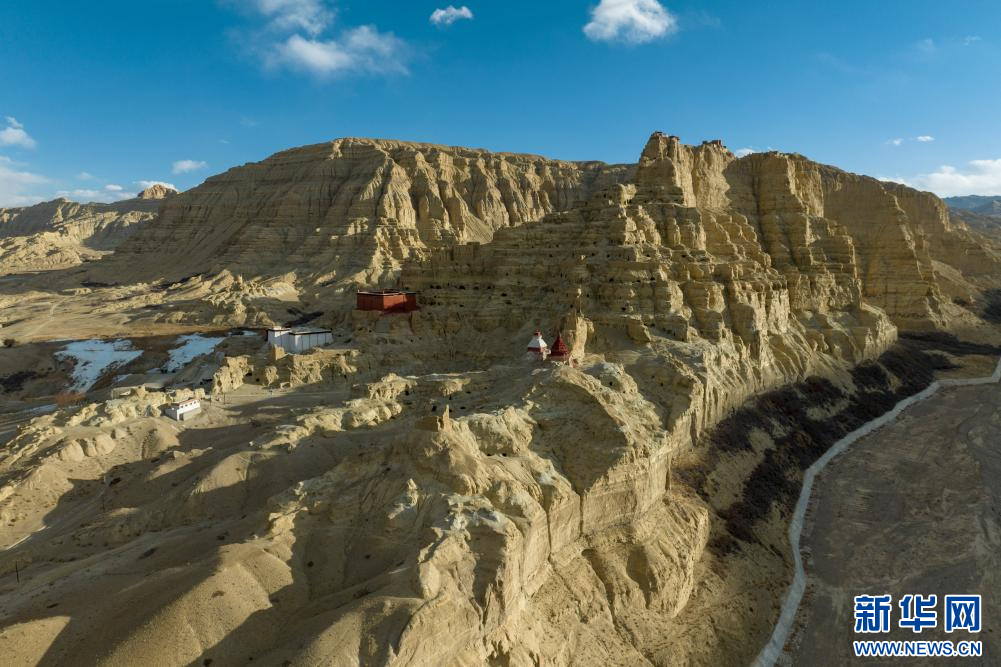 1月30日拍攝的古格王國遺址腳下的一座寺廟。新華網 旦增努布 攝