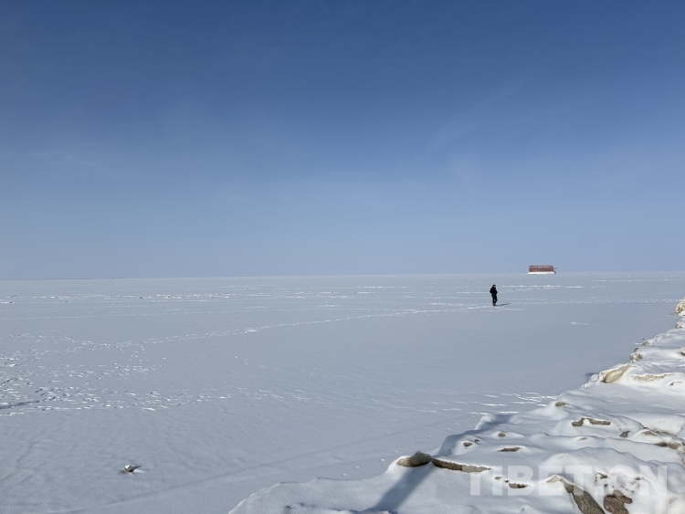 青海湖是我國面積最大的內(nèi)陸湖泊,湖岸線長約360公里。落雪后的湖面更是白茫茫一片,極目遠眺,水與天相接。天地間十分安靜,只余不太溫柔的風(fēng)聲在耳側(cè)呼嘯而過。偶爾有游人在冰面走動,在白色的背景下顯得格外醒目。我們的無人機好像一只勇敢的沙鷗,翱翔在水天之間。(中國西藏網(wǎng) 文/李一凡 龍真多吉 張萌萌)