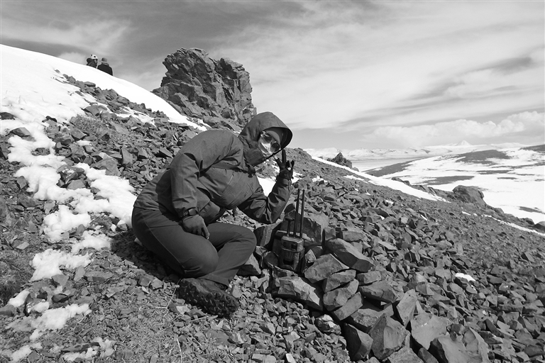 圖為姜楠在野外安裝紅外相機。圖由姜楠提供