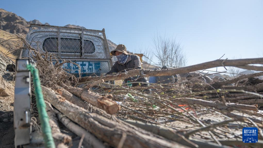 3月12日,東嘎社區(qū)二組村民在搬運(yùn)樹苗。新華社記者 晉美多吉攝 ??