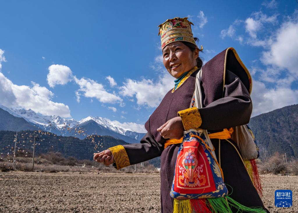 這是3月16日拍攝的西藏山南市瓊結(jié)縣加麻鄉(xiāng)加麻村的春耕儀式現(xiàn)場。新華社記者 旦增尼瑪曲珠 攝 ??
