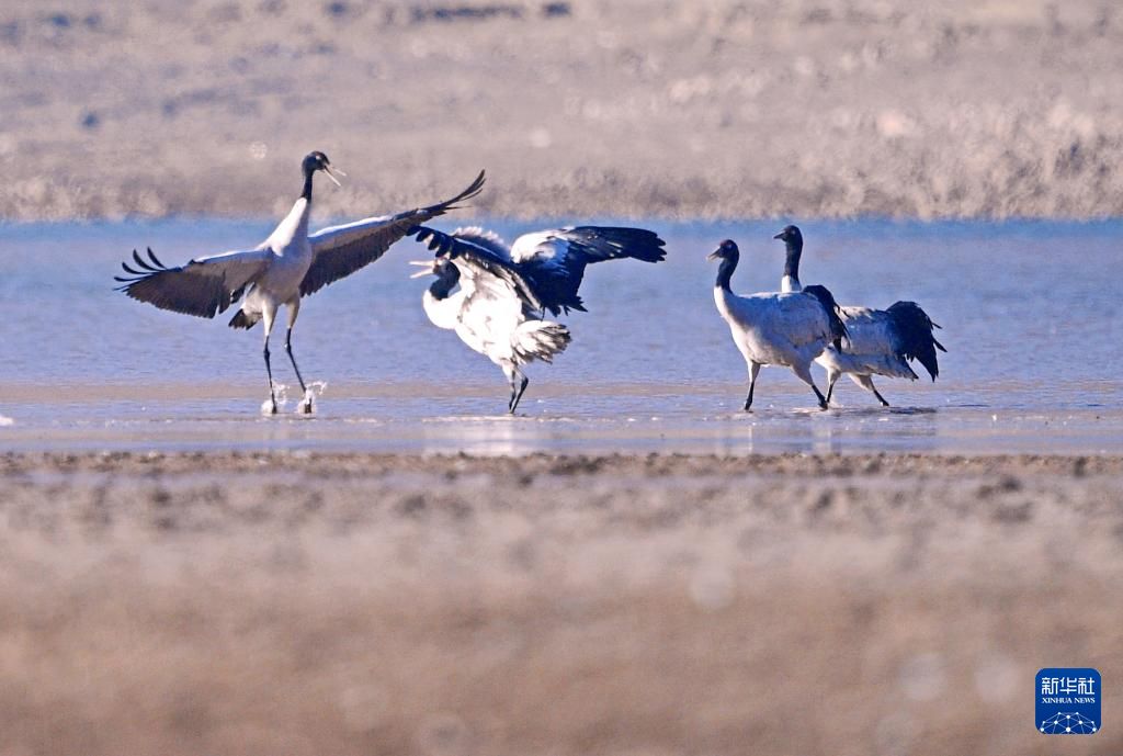 新華全媒+丨黑頸鶴結束“寒假” 遷徙拉開帷幕