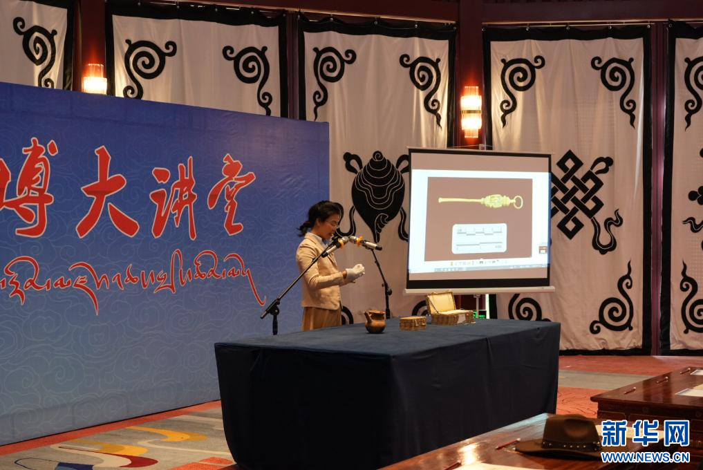 何偉向觀眾講解拉薩當(dāng)雄吐蕃墓地中出土的金耳勺。(丹玉 攝)