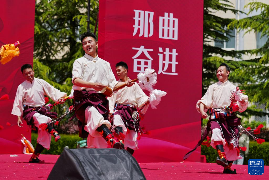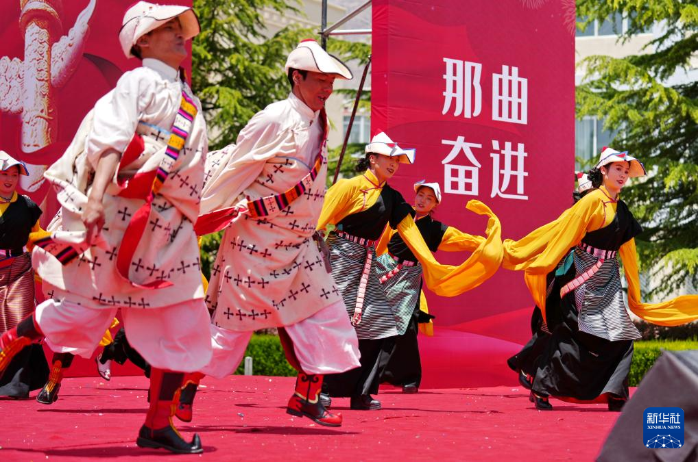 5月12日,在西藏職業(yè)技術學院職業(yè)教育活動周啟動儀式暨比如縣非物質文化遺產(chǎn)進校園活動上,比如縣民族藝術團的演職人員在表演節(jié)目。新華社發(fā)(趙大志攝) ??