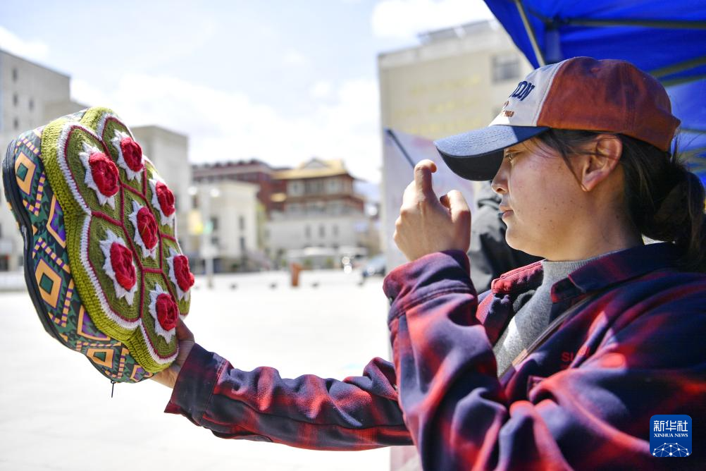 5月12日,在西藏職業(yè)技術學院職業(yè)教育活動周啟動儀式暨比如縣非物質文化遺產(chǎn)進校園活動上,一名消費者在挑選比如縣的特色旅游產(chǎn)品。新華社記者 張汝鋒 攝