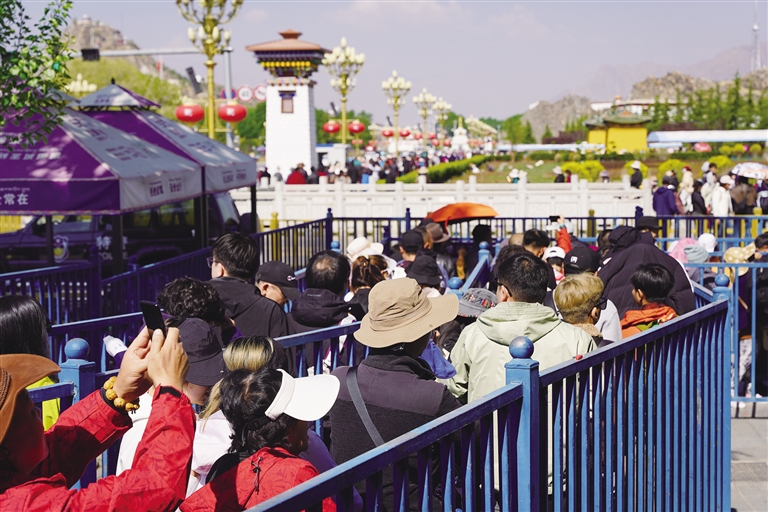 5月27日,上海游客陳女士乘火車抵達(dá)拉薩。這次進(jìn)藏旅游,她給自己安排了15天的行程,其中有4天專門留給拉薩?!霸缇吐犝f(shuō)‘拉薩人的清晨是從一杯甜茶開始的’,我和朋友今天沒什么事,就打算去甜茶館吃藏面、喝甜茶、和本地人聊聊天,感受一下這里的人文風(fēng)情?!标惻空f(shuō)道。