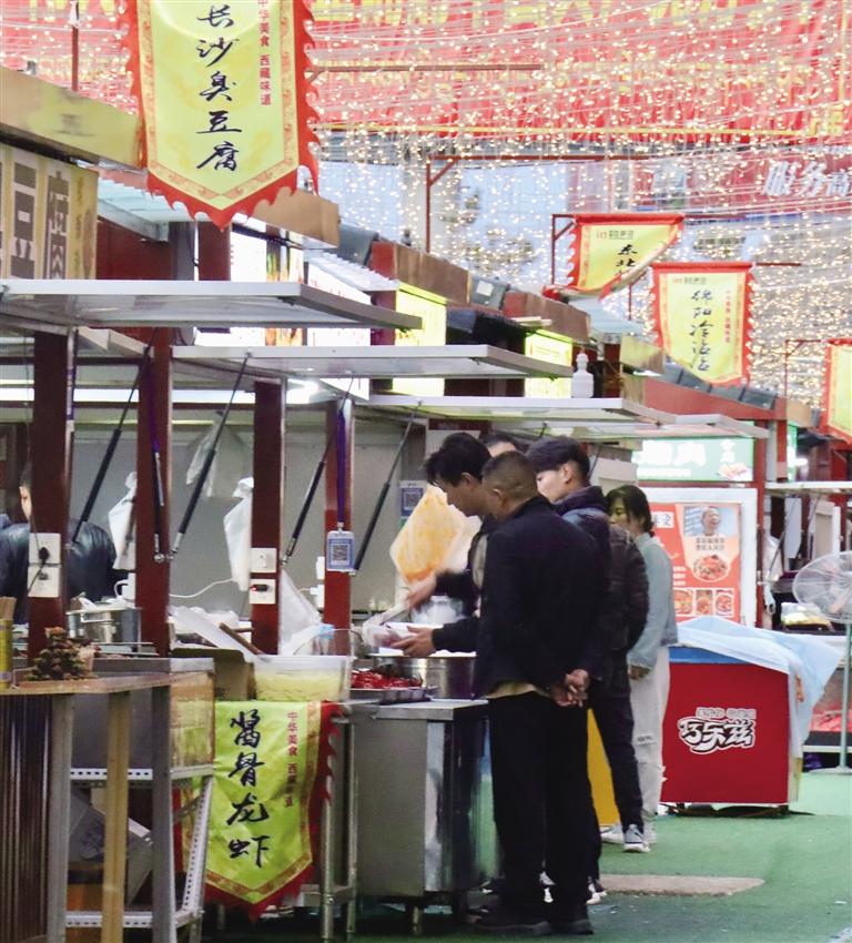 “缽缽雞啊缽啊缽缽雞,一元一串的缽缽雞……”隨著魔性洗腦的叫賣聲響起,記者走進了拉薩城關(guān)區(qū)東郊萬達廣場的金街。道路兩旁諸多小吃店鋪集錦,撈汁小海鮮、鐵板魷魚、各種燒烤、脆皮五花肉、炒年糕、精釀扎啤、特調(diào)咖啡……美食琳瑯、人聲鼎沸,散發(fā)著迷人的城市煙火氣,撫平了夏日的躁動,點燃了夏夜的熱情。