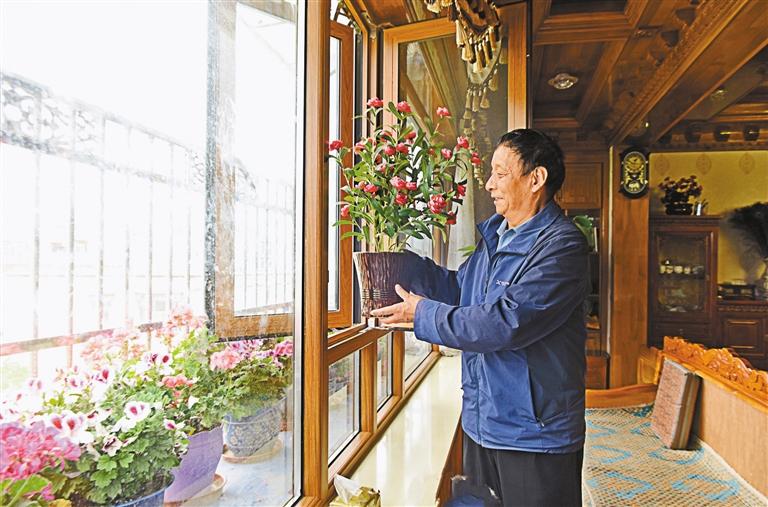 圖為拉薩市城關區(qū)加榮棚戶區(qū)小康安居園的居民拉瓊正在家里侍弄花草。 記者 蔣蓋 攝
