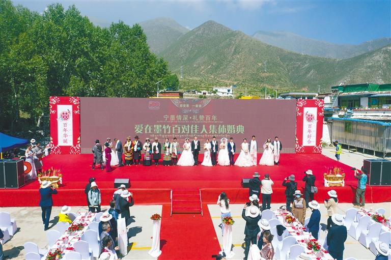 墨竹工卡縣舉行愛(ài)在墨竹百對(duì)佳人集體婚典現(xiàn)場(chǎng)。