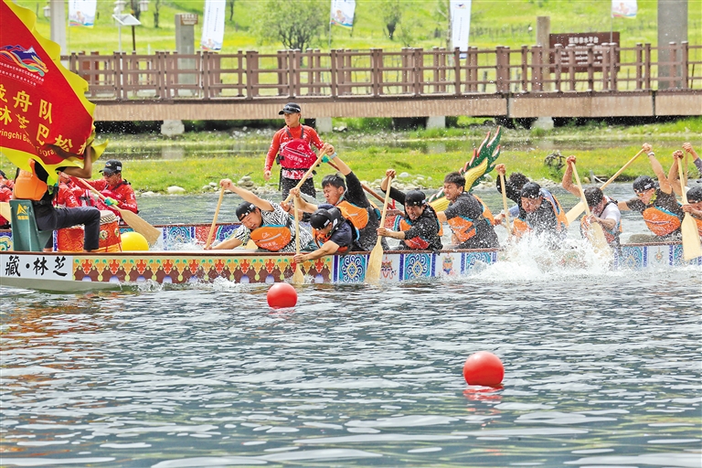 6月10日,2024年西藏林芝南迦巴瓦高原體育大會(huì)魯朗中尼高原龍舟友誼賽精彩上演。來(lái)自尼泊爾、新加坡和北京市、云南省以及拉薩市、林芝市等多地的8支龍舟隊(duì),百余名運(yùn)動(dòng)員奮力揮槳、激流勇進(jìn),為廣大群眾和游客獻(xiàn)上了一場(chǎng)水上競(jìng)技的“大餐”。