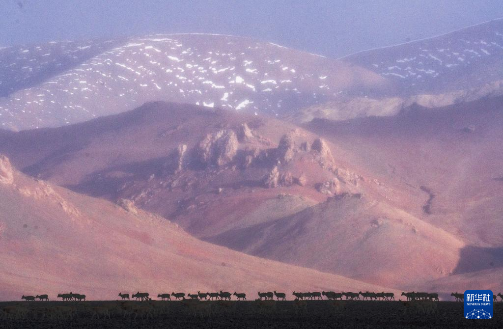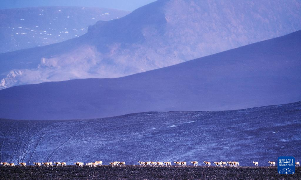 6月15日清晨在羌塘國家級自然保護(hù)區(qū)拍攝的遷徙中的母藏羚羊。新華社記者 費茂華 攝