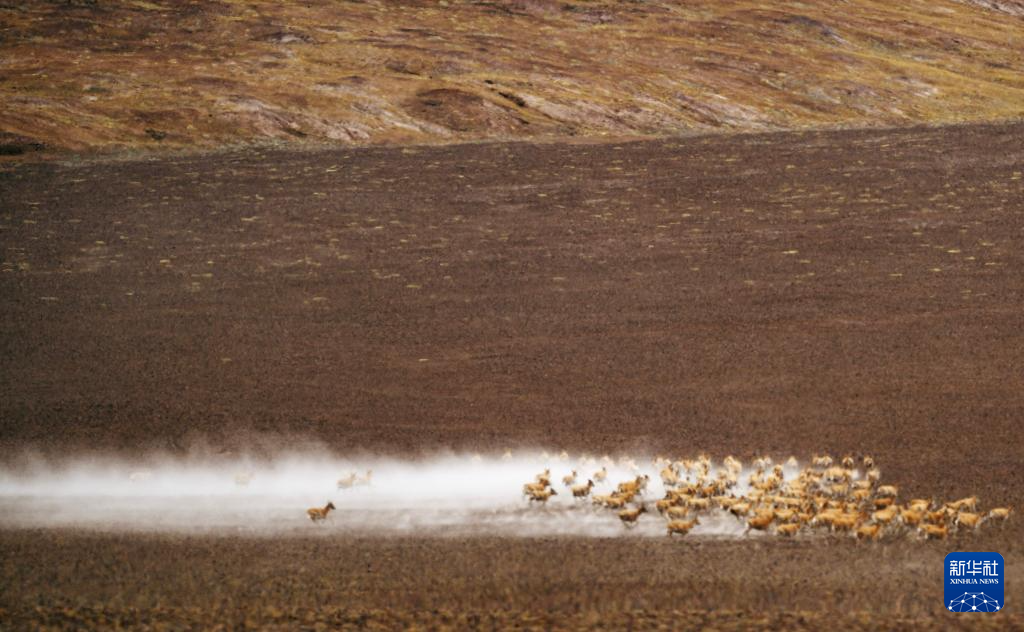6月13日,在羌塘國家級自然保護(hù)區(qū),遷徙中的藏羚羊奔跑起來。新華社記者 費茂華 攝