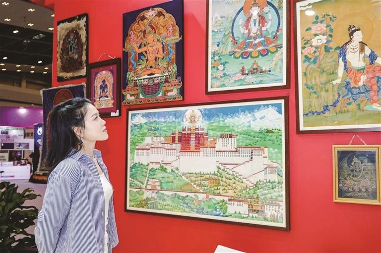 場(chǎng)館外,熱情奔放的康巴歌舞洋溢著濃郁的民族風(fēng)情。走進(jìn)場(chǎng)館內(nèi)部,可以近距離體驗(yàn)藏香制作和飄逸靈動(dòng)的藏文書法。唐卡漆畫、民族手工飾品等藏東文化和蟲草、貝母、藏紅花等特色產(chǎn)品琳瑯滿目,更有邊壩三色湖、貢覺(jué)拉妥濕地、芒康千年鹽田、洛隆俄西杏花等雪域美景,進(jìn)館咨詢互動(dòng)的企業(yè)、嘉賓絡(luò)繹不絕。