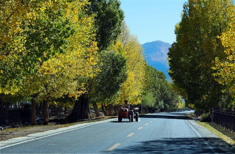 沿著318國道向東南方向行進(jìn)至拉薩市墨竹工卡縣日多鄉(xiāng),沿途秋景宛如大自然不慎打翻的調(diào)色盤,濃烈的色彩撲面而來,讓人還沒來得及細(xì)細(xì)品味,便已深深沉醉其中。
