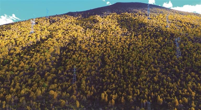 當(dāng)?shù)诌_(dá)扎西崗鄉(xiāng)時(shí),318國道兩側(cè)的樹木早已褪去夏裝,換上了色彩艷麗的秋日盛裝。幾只小羊羔埋首樹影間,細(xì)細(xì)啃食著落地的枯葉,毛茸茸的模樣憨態(tài)可掬;行至日多鄉(xiāng)境內(nèi),遠(yuǎn)方大山上的樺木林率先映入眼簾。陽光透過枝葉的縫隙,被層層疊疊的樺葉染成暖融融的金黃色,順著山勢(shì)漫山遍野鋪展,仿佛給大地披上了一層華麗的鎏金毯。