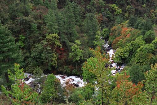 我們沿著一條巨大的峽谷蜿蜒向南行駛,經(jīng)過五六個(gè)小時(shí)的行程,經(jīng)歷海拔2000米的巨大落差,便到達(dá)了勒布溝。勒布溝有大片的原始森林,生長著松、柏、樺、杉、竹和“稱巴”樹,其中尤以“稱巴”名貴,其紋密質(zhì)堅(jiān),過去常被藏傳佛教寺院用做雕刻經(jīng)板的材料。野生藥材有數(shù)十種之多,如高山上的雪蓮、蟲草,林中的三七、天麻,晨霧中的門隅勒布溝景色。野生動(dòng)物資源豐富,成群的野豬和猴子常在離村莊不遠(yuǎn)的林中活動(dòng),還有麝、麂、小熊貓、野牛、雪豬、狐貍、狼和豹等。雪山、森林、草地、河流、田園、牧場,是勒布溝最經(jīng)典的風(fēng)景,由此,構(gòu)成了一幅絕美的、田園牧歌式的門巴族風(fēng)情山水畫。