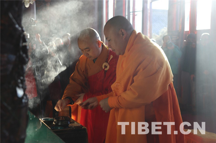 中國(guó)西藏網(wǎng)訊 今年適逢中國(guó)佛教協(xié)會(huì)名譽(yù)會(huì)長(zhǎng)十世班禪大師圓寂30周年,1月28日上午9時(shí),中國(guó)佛教協(xié)會(huì)及在京直屬寺院法師、工作人員、首都善信居士齊聚北京廣濟(jì)寺,隆重舉行紀(jì)念十世班禪大師圓寂30周年法會(huì),深切緬懷十世班禪大師。法會(huì)禮請(qǐng)中國(guó)佛教協(xié)會(huì)演覺(jué)副會(huì)長(zhǎng)、宗性副會(huì)長(zhǎng)、祜巴等傣副會(huì)長(zhǎng)主法,宏度副秘書(shū)長(zhǎng)主持紀(jì)念儀式。三位法師拈香主法,帶領(lǐng)僧眾莊重誦經(jīng),圓滿完成法會(huì)儀軌。
