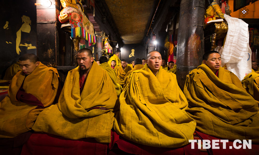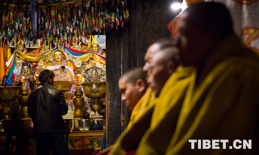 圖為扎寺僧人正在誦經(jīng)。攝影:趙耀