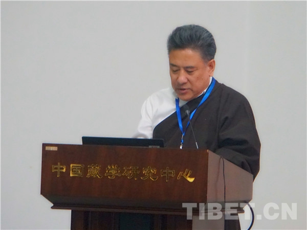 中國藏語系高級佛學(xué)院副院長土多申格、中央民族大學(xué)教授班班多杰、中國藏學(xué)研究中心研究員張?jiān)频认群蟀l(fā)言。各位學(xué)者專家分別就十世班禪大師的榜樣精神、從十世班禪大師轉(zhuǎn)世看活佛轉(zhuǎn)世的歷史定制、兩代班禪與青海師范大學(xué)間的特殊因緣、從扎什倫布寺民主管理試點(diǎn)等多角度多層次深入研討大師愛國愛教思想的博大精深,追思他功德業(yè)績的偉大。