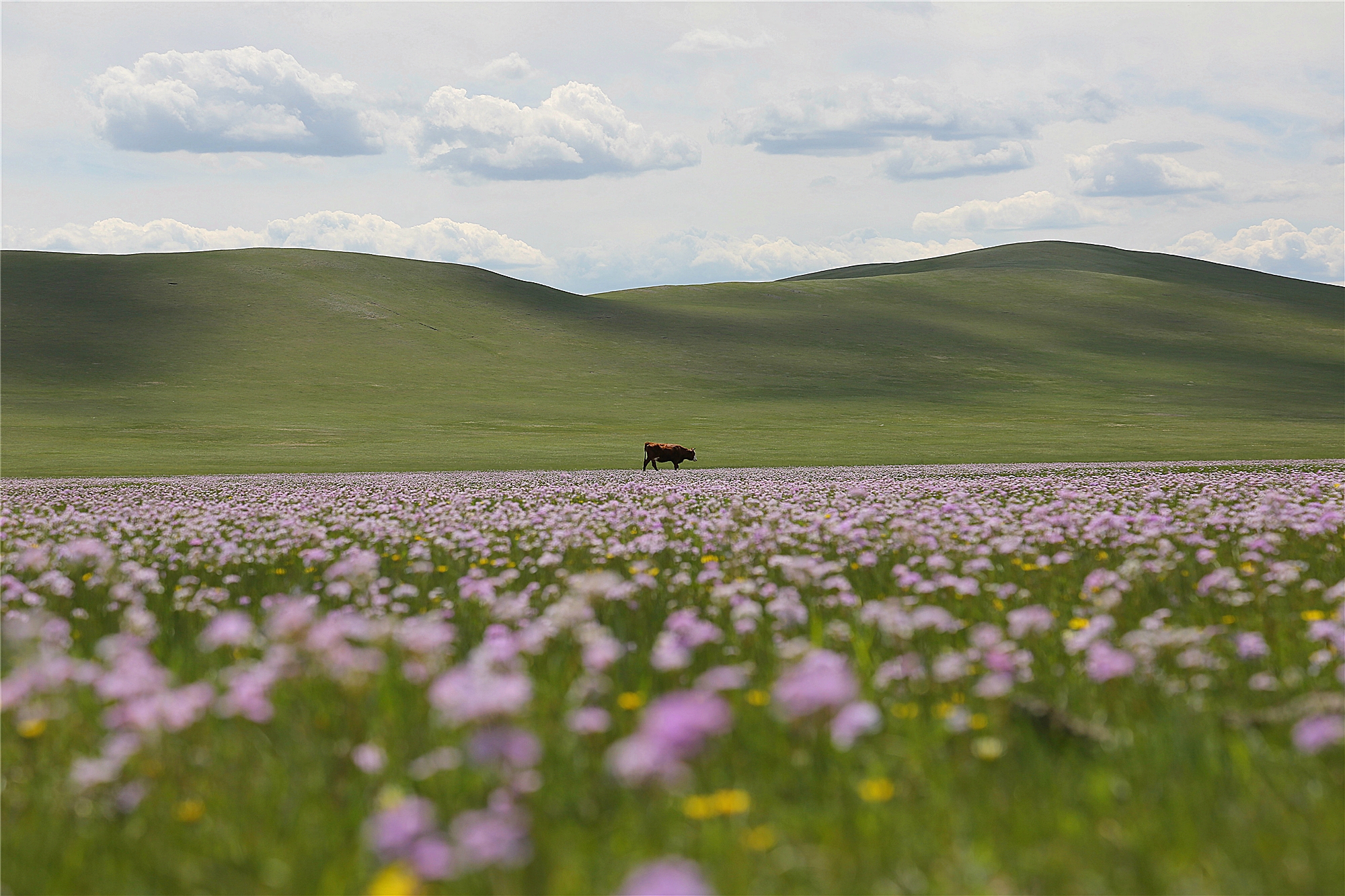 這是在扎魯特旗拍攝的草原花海(2020年6月5日攝)。進入夏季,內蒙古自治區(qū)通遼市扎魯特旗北部山地草原生機勃勃。