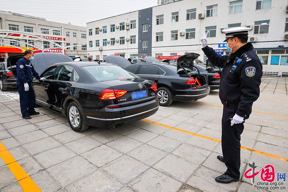 專業(yè)檢查人員車輛進(jìn)行登記。中國(guó)網(wǎng)記者 鄭亮攝