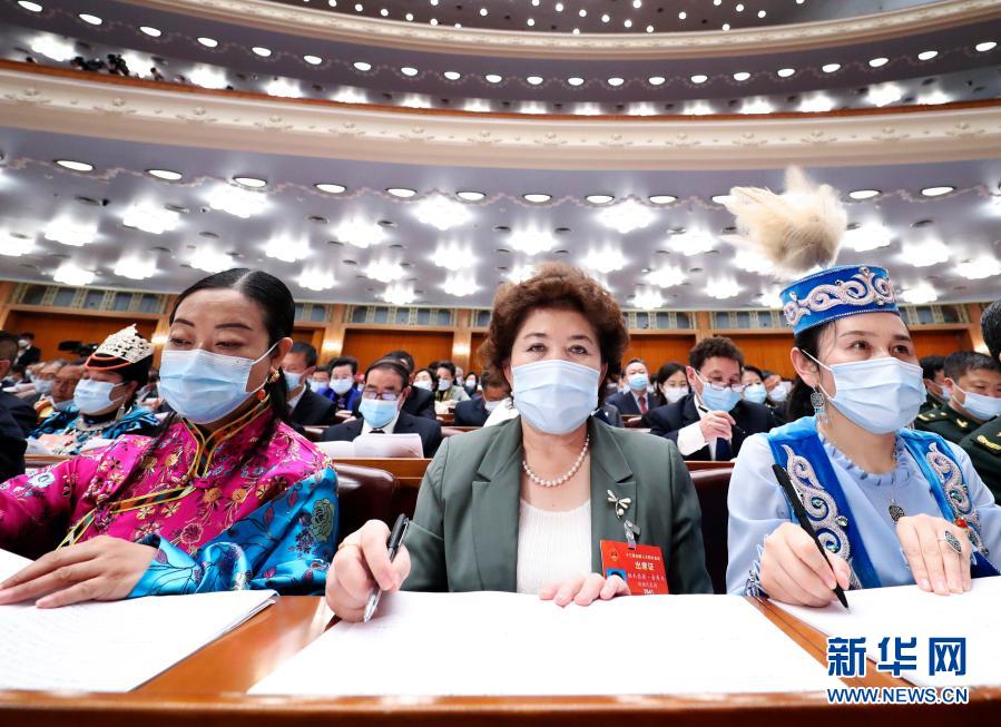3月8日,十三屆全國人大四次會議在北京人民大會堂舉行第二次全體會議。這是幾位女代表在認(rèn)真聽會。新華社記者 丁林 攝