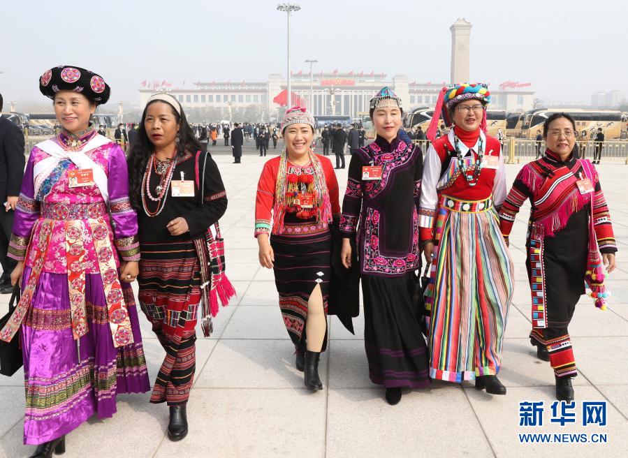 3月5日,第十三屆全國人民代表大會第四次會議在北京人民大會堂開幕。這是女代表們走向會場。新華社記者 李鑫 攝