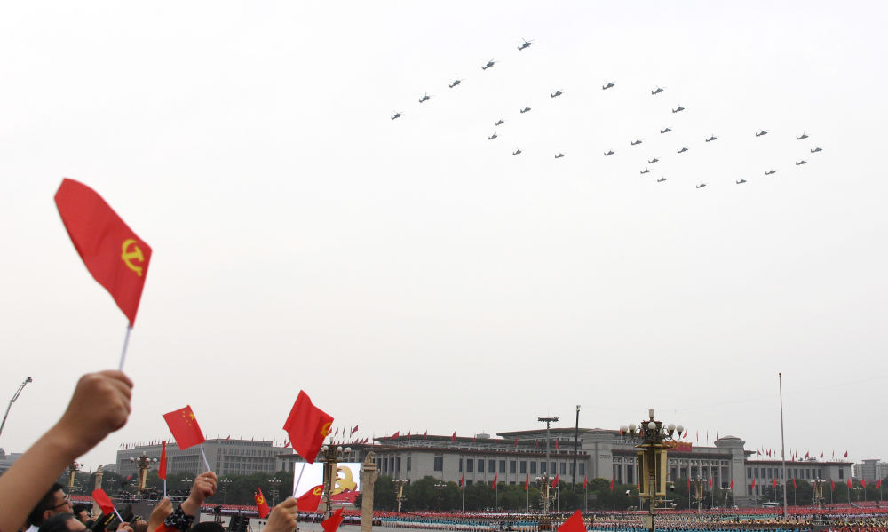 7月1日上午,慶祝中國共產(chǎn)黨成立100周年大會(huì)在北京天安門廣場(chǎng)隆重舉行。這是飛行慶祝表演。新華社記者 李欣 攝