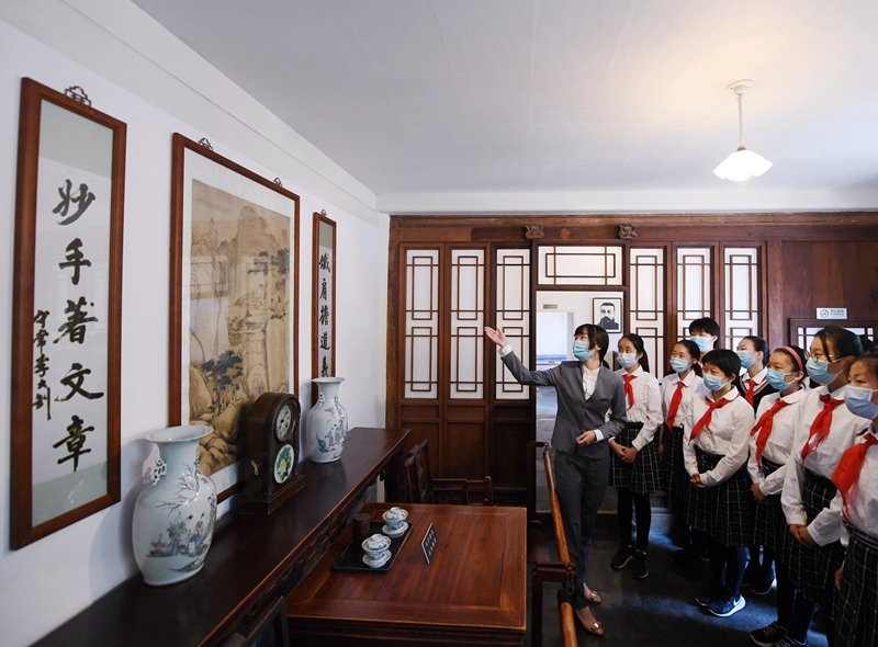 “南陳北李,相約建黨”,偉大建黨活動(dòng)是偉大建黨精神形成的實(shí)踐基礎(chǔ)。近期,中國(guó)共產(chǎn)黨早期北京革命活動(dòng)舊址正式面向社會(huì)公眾對(duì)外開(kāi)放。本次集中開(kāi)放的革命活動(dòng)舊址包括北京李大釗故居、《新青年》編輯部舊址等。圖為講解員為前來(lái)參觀李大釗故居的學(xué)生做介紹。新華社記者 張晨霖/攝