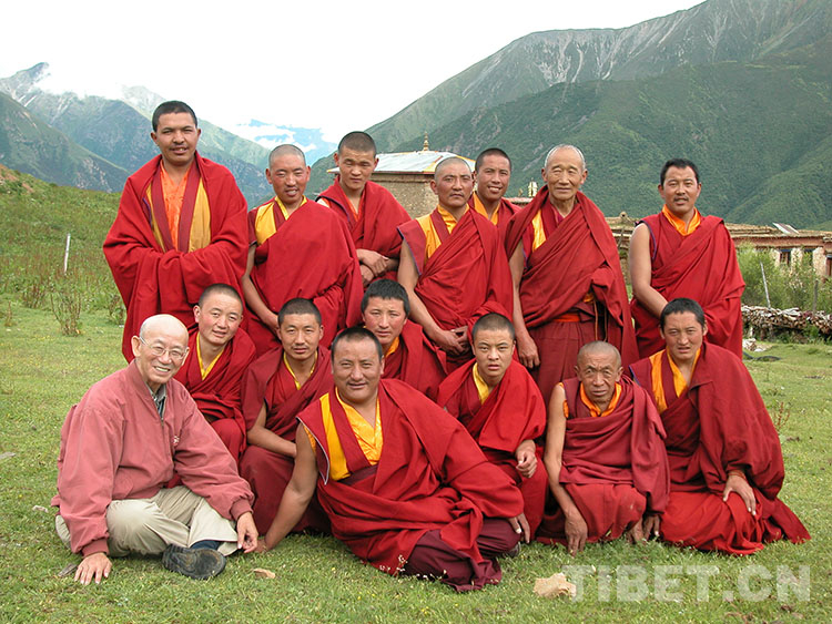 圖為1997年8月,海峽兩岸藏學(xué)研討會后,兩岸藏學(xué)學(xué)人在青海黃南州河南蒙旗考察,陳慶英先生(中)和與會部分學(xué)者合影