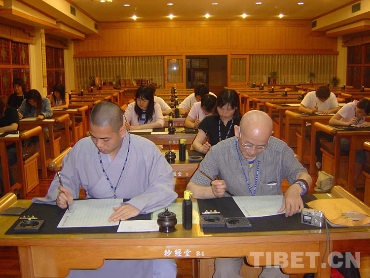 圖為2004年陳慶英先生在臺灣講學(xué)期間,于佛光山體驗(yàn)抄經(jīng)