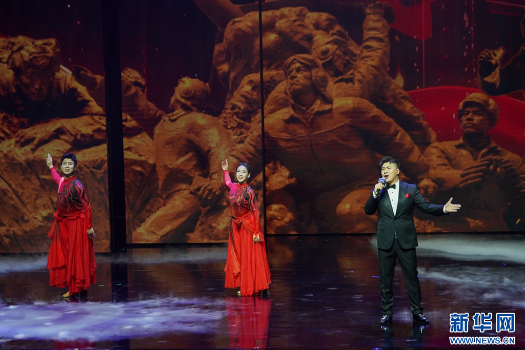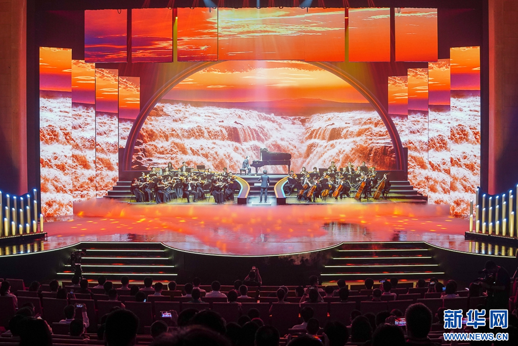 這是7月17日晚上拍攝到的晚會序幕,鋼琴協(xié)奏曲《黃河》第四樂章:保衛(wèi)黃河。新華網(wǎng) 肖和勇 攝