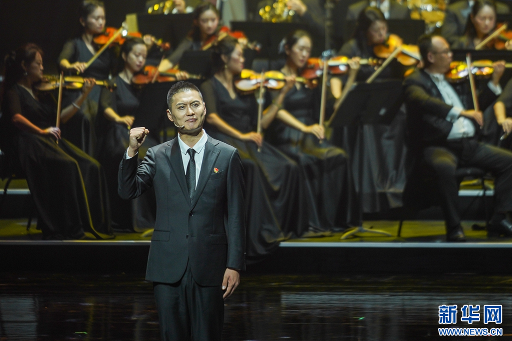 7月17日晚上,青年演員侯京健在講述《信仰之光照亮征程》。新華網(wǎng) 肖和勇 攝
