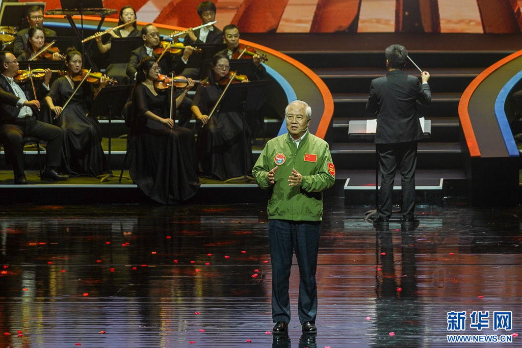 這是7月17日晚上拍攝到的晚會尾聲,交響合唱《人民至上》。新華網(wǎng) 肖和勇 攝